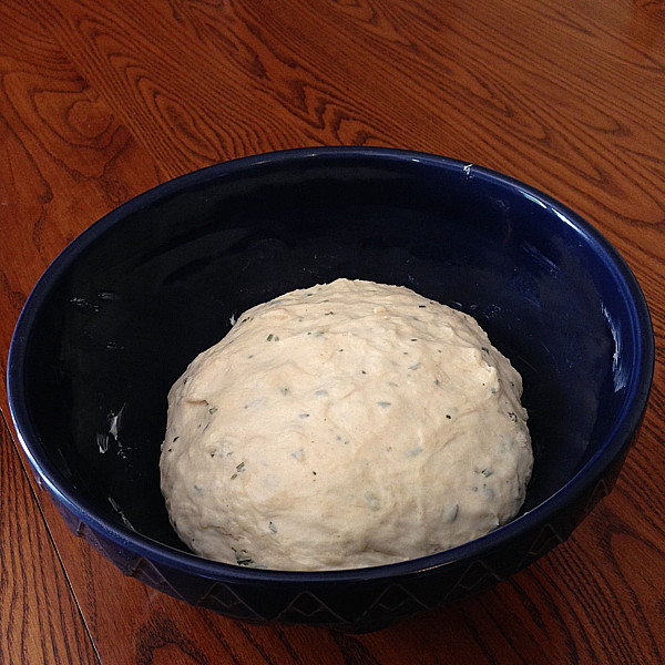 - In a mixing bowl stir together water and yeast. Add herbs, salt, and flour; mix to combine. Don’t bother to knead it, just make sure there aren’t any streaks of dry flour. The dough will be sticky.